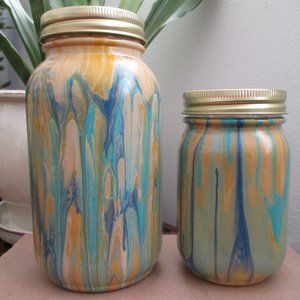 2 Original Decorative Storage Jars Fluid Pour Paint Technique Quart and Pint