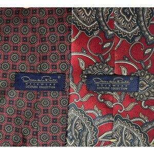 (2) Oscar de la Renta Couture Collection Burgundy Patterne Silk Neckties US Made