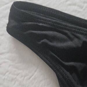 Soft and comfortable, 2 pairs of hi cut panties. Colors are 1 pr Onyx, 1 pr Clay, size xxs. Fabric is polymide elastane with cotton lined gusset.
