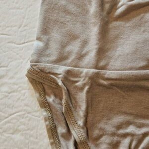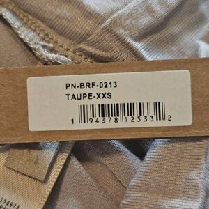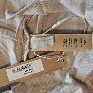 Very soft and comfortable. Sits at waist, wide waistband. Colors are Sienna and Taupe, size xxs. Fabric is rayon spandex.