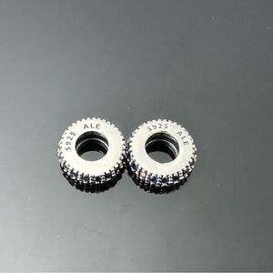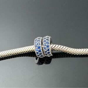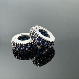 2 PANDORA Spacers Sparkling Blue Cubic Zirconia 925 Ale Silver gift box #170