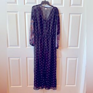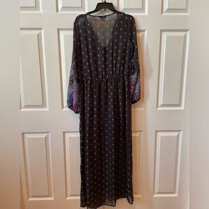 NWOT 2 PC DRESS SOLID BLACK SHEATH & MAXI FRONT BOTTON LONG SLEEVE BLACK CHIFFON DUSTER XL