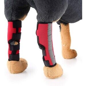 Keep your furry friend active and comfortable with this 2-piece dog knee brace set. Designed for small breeds and specifically sized dogs, this brace is perfect for your pup's torn ACL in the hind leg and provides essential support for the rear leg knee. The bright red color with a reflective stripe adds a stylish touch to your pet while the high-quality material ensures durability and long-lasting use.