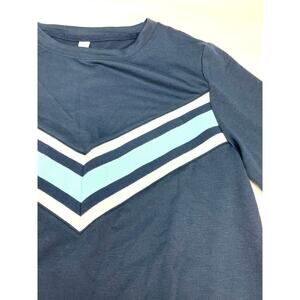 Ideology Sweater Top is Medium weight with long sleeves Crew neck and cuffs light blue and white Chevron Stripe at Chest ORG $39.50