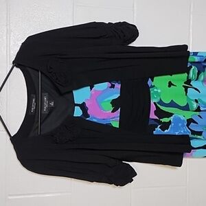 Perceptions NY Slinky Slip Over Tank Dress & Black Bolero Jacket Rose Detail