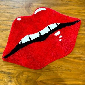 Bright red bath rug. Perfect for adding a pop of color to your bathroom.