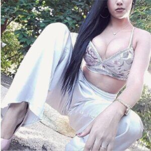 SILKY-LIKE SATIN WIDE LEGGED PANTS
