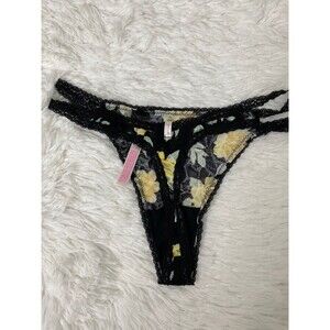 2 PINK Floral Lace Strappy Thong Panty Multicolor Floral yellow roses Size S/M they are new with out tag in excellent condition one is size s and the other one is M they both fit medium please see pictures for more details