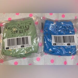 2 PINK Victoria’s Secret boyshort panties bundle blue silver stars foil graphic