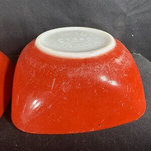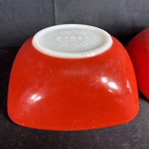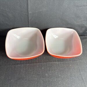 2 PYREX 10-12 oz A-17 Bowls Red Square Ovenware USA 4.75"