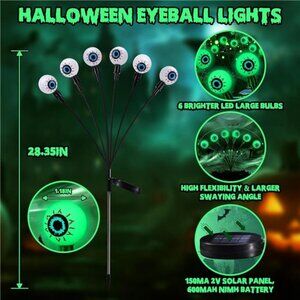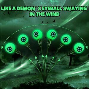 Scary Halloween Eyeball Lights: Featuring 3D designs and swaying eyeballs for an ultra-realistic, lifelike effect. The bloodshot green eyes, paired with an eerie glow, instantly create a chilling atmosphere. Light up your Halloween with these creepy flickering eyeball lights—perfect for giving your neighbors and passersby a fright