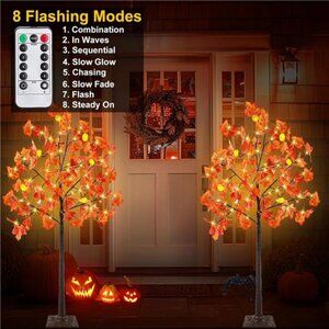 2 Pack 4 Ft Prelit Lighted Fall Maple Tree Halloween Fall Decorations