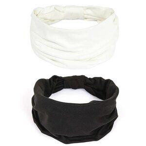 2 Pack Boho Headbands – Knotted Cotton Turbans (White, Black)