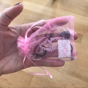 Updated listing to include TWO gift packs (2 keychains and 2 ribbon pins). NWOT breast cancer bike keychain and breast cancer awareness ribbon pin gift set in pink gift bag. Great for a breast cancer supporter who also likes to bike. Handmade by Monkeybiz in Cape Town South Africa.