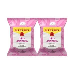 2 Pack Burts Bees Rose Water Micellar Facial Towelettes 30 each
