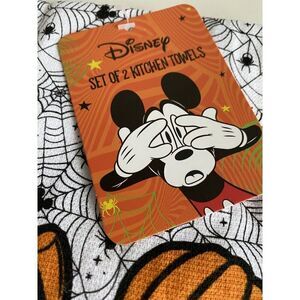 2 Pack Disney Mickey Mouse Happy Halloween Kitchen Towels Jack O Lantern Spider Webs NEW