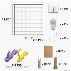 2 Pack Heavy-Duty Grid Wall Panels, Wire Mesh Organizer, Wall Display with Hooks