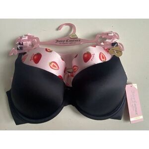 2 Pack Juicy Couture Bra SEXY Push Up JC6965 Strawberries Pink Black Sz 34C NEW
