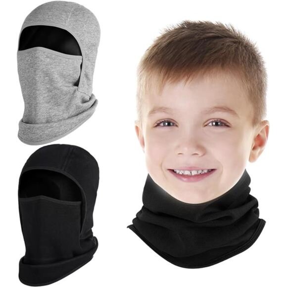 2 Pack Kids Balaclava Face Mask for Boy Girl, Winter Hat Ski Mask for Cold