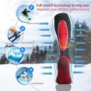 -COMPRESSIVE ARCH SUPPORT: The elastic arch band holds the warm socks perfectly in place to prevent sliding, keeping them in place during your outdoor sports activities