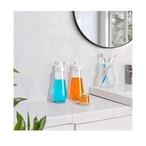 The 2 Pack Mouthwash Dispenser by KIUSOWAYD is a set of small, clear glass containers perfect for storing mouthwash or other bathroom essentials. Each container has a capacity of 8.8 oz, making it convenient for dispensing the desired amount of product. The clear color and glass material give these dispensers a sleek and modern look, adding a touch of elegance to any bathroom decor. Ideal for keeping your mouthwash organized and easily accessible.