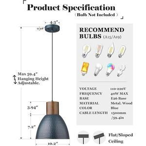2 Pack New in the Box Elyona Adjustable Height Blue Hammered Pendant Light