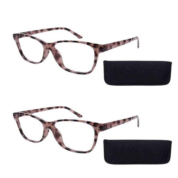 2 Pack Of Blue Light Glasses w/ Black Geo Print Soft Cases, Animal Print, +0.00