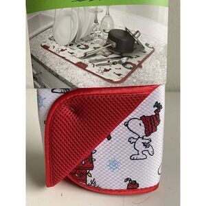 2 Pack Peanuts SNOOPY CHRISTMAS Dish Drying Mats 16 X 18” Dog House Sled NEW