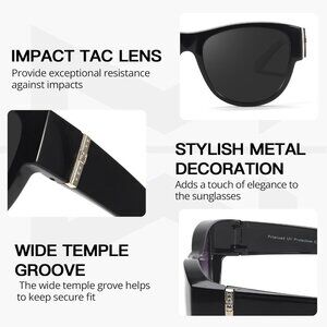 Features: These fit-over sunglasses are designed to comfortably sit over most women's regular glasses, offering added UV protection and a stylish look. Lightweight yet sturdy, they’re ideal for outdoor adventures or daily errands without feeling cumbersome. The polarized lenses help reduce glare, making your time in the sun more comfortable.