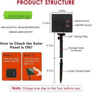 Solar Powered Garden Lights: Powered by solar, it can work for 10 to 12 hrs after fully charged (The charging efficiency depends on the weather).