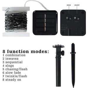 8 Lighting Modes: Gorgeous 8 lighting modes including combination, in wave, sequential, slo-glo, chasing/flash, slow fade, twinkle/flash, and steady on. Press the MODE button on the solar panel till the mode you like.