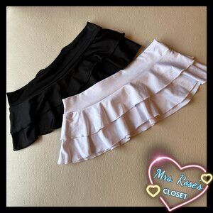 2 stretchy super short skirts with ruffled finish. Fabric stain free and intact. Items stored in pet and smoke free environment.