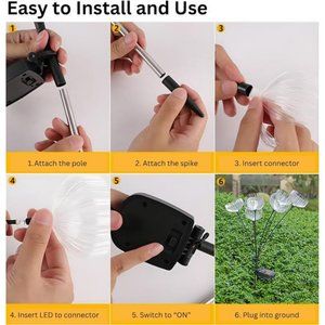 🧿【 Easy to Install and Use 】No wires or other tools are required. Just remove the protective film on the solar panel, then press the switch on the jellyfish solar stake lights to turn it on. The solar panel should be placed in a place where it can get direct sunlight during the day. At night, the solar lights garden will automatically turn on and light up your yard, creating a beautiful and romantic atmosphere.