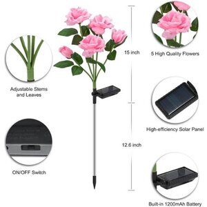 Adjustable Stems and Leaves: The stems and leaves are propped up by iron wires, which are super flexible and resistant. The stems and leaves of roses can be bent into different angles and styles. Beautiful glow solar flower lights add a sophisticated, visually pleasing atmosphere to any outdoor space.