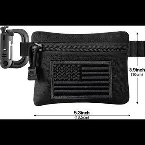 -- Includes: Package comes with 2 x tactical pouches, 2 x US flag patches, and 2 x D-ring clips. Tactical Pouch Size: 5.3"(H) x 3.9"(L) ; Flag Patch Dimensions: 3.14"(L) x 2"(W).
