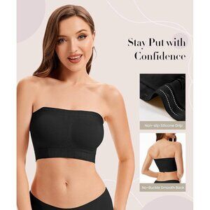 Stay comfortable and supported with this wireless strapless bandeau bra. Silicone grips keep it securely in place while fixed padded cups provide full coverage. Soft, breathable ribbed fabric feels gentle on skin. Includes two adjustable strap sets for styling as strapless, halter, or criss-cross. Perfect under dresses, tops, or gowns, it offers invisible support and versatility for everyday wear or special occasions.