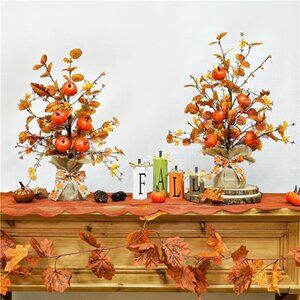 2 Pack Lighted Fall Eucalyptus Tree: The package includes 2 pack 18 inch fall eucalyptus trees with warm lights. The fall trees are decorated with eucalyptus leaves, maples leaves, pumpkins, berries, twigs small fall flowers and burlap base