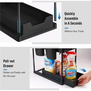 2 Pack Under Sink Organizers & Storage with Sliding Drawer, 2 Tier, Modern Black