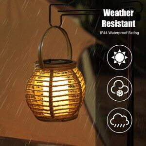 DIMENSIONS: Compact solar lantern measuring 6.1 x 6.1 x 5.5 inches with decorative rope design, perfect for outdoor spaces