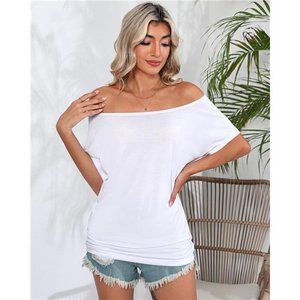 2 Pack Women's Off The Shoulder Tops, Short Bat Wing Sleeve Off Shoulder Shirts