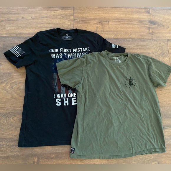 2 Pack XL T-Shirts Howitzer Patriot Olive Green Graphic AND Black Lion Freedom T