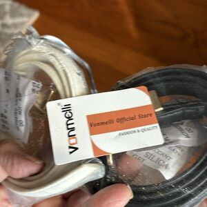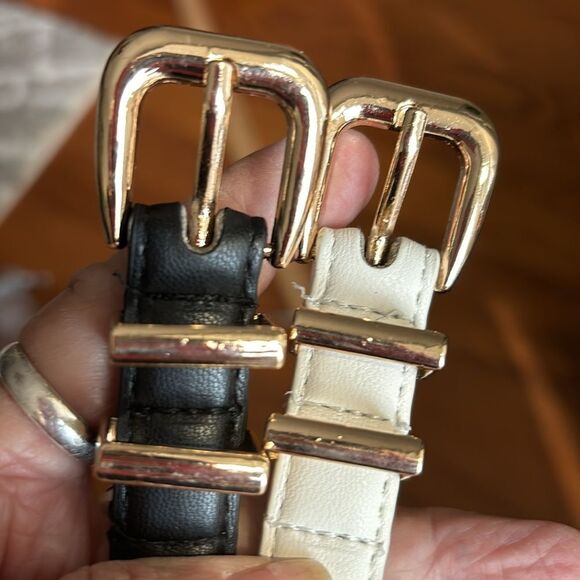2 Pack women's faux leather belts black+white 110 cm/43.3". NWT & Smoke free/Pet free home. See ALL photos for complete description/details.