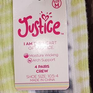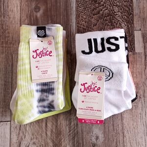 2 Packages of Girls Turn-Cuff Peek-A-Boo & Crew Justice Socks