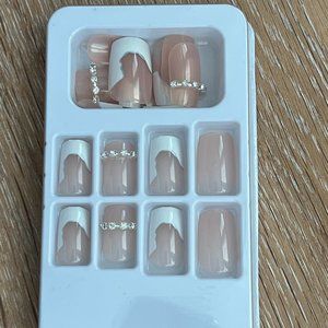 glue on nails, press on nails, fake nails, false nails, french nails, bling nails, artificial mani, diy mani, manicure, pink & white manicure, pink & white mani, pretty nails