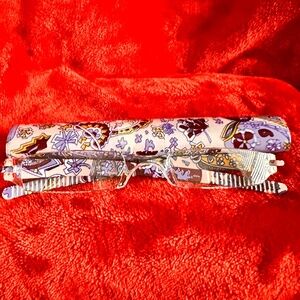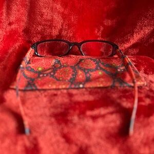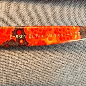 --Evolution Eyes Readers in Blue/Red Paisley. The frame is Dark Blue & the arms are Paisley. They were worn a few times. No obvious imperfections. "From fun fashion prints to cutting edge technology, EvolutionEyes reading glasses have something for everyone. All styles have spring hinge temples for added durability and comfort. Each reader comes with a micro fiber case that can be used to clean the lenses and store the frame when not in use."