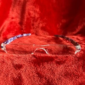 --True fold-up readers & a thin hard case. They can be stashed anywhere. The lens are clear and the arms & the case are a Purple pattern. These have never been used.