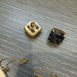 2 Pair Earrings - Confetti Studs and Beige Drop Earrings