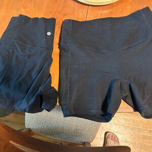 Size medium, black, 5 inches long. only selling both pair as a set (price is for both!). Worn each once and that's it! LOVE these shorts but find the size L fits me better. I had misplaced them but found them so back on sale !