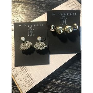 2 Pair M Haskell INC Earring Dual Post & Jacket Gold Black Filigree Rhinestone