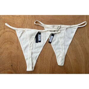 2 Pair Of Skims Thong XL Logo Pointelle Thong Bone STYLE PN-THG-0192.